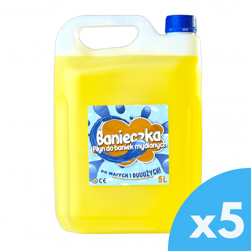 Płyn do baniek mydlanych Banieczka w pakiecie 5x5 to coś dla osób, które systematycznie korzystają z dobrodziejstwa tego magicznego płynu, płacąc mniej!